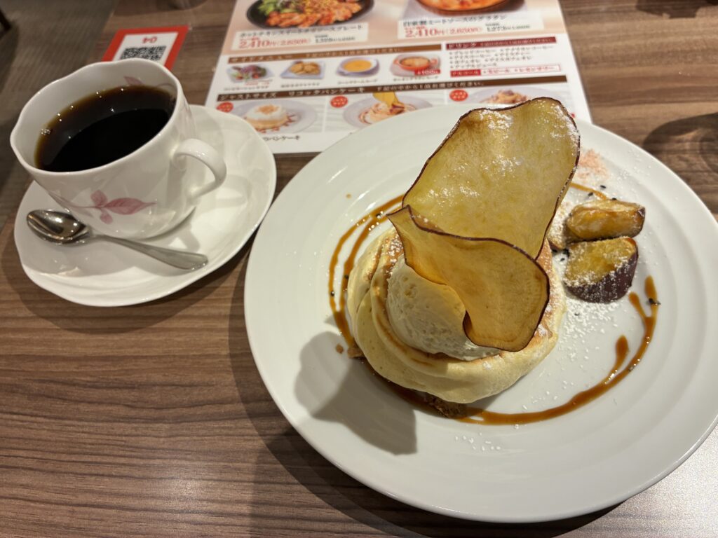 最後はさつまいものパンケーキとコーヒーとセットで。