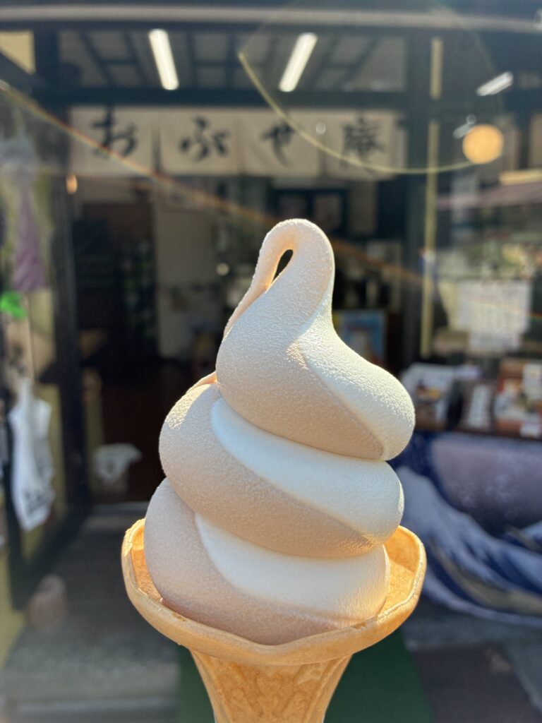 最後はお土産として竹風堂でどら焼き栗あんを買い、栗とミルクのミックスソフトを食べて帰りました。