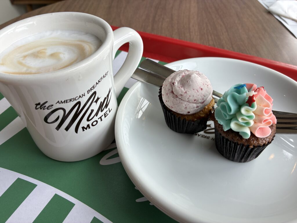 姉妹店のthe MINTの方ではミニカップケーキとカフェラテも頂きました。