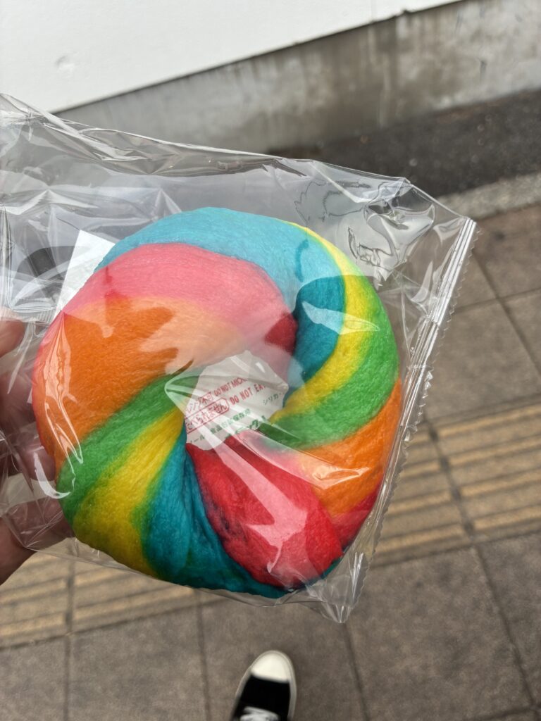目当てのハロウィンベーグルは売り切れで残念でしたがお土産に4つほどベーグルを買いました。このレインボー色のベーグルは珍しいかも?