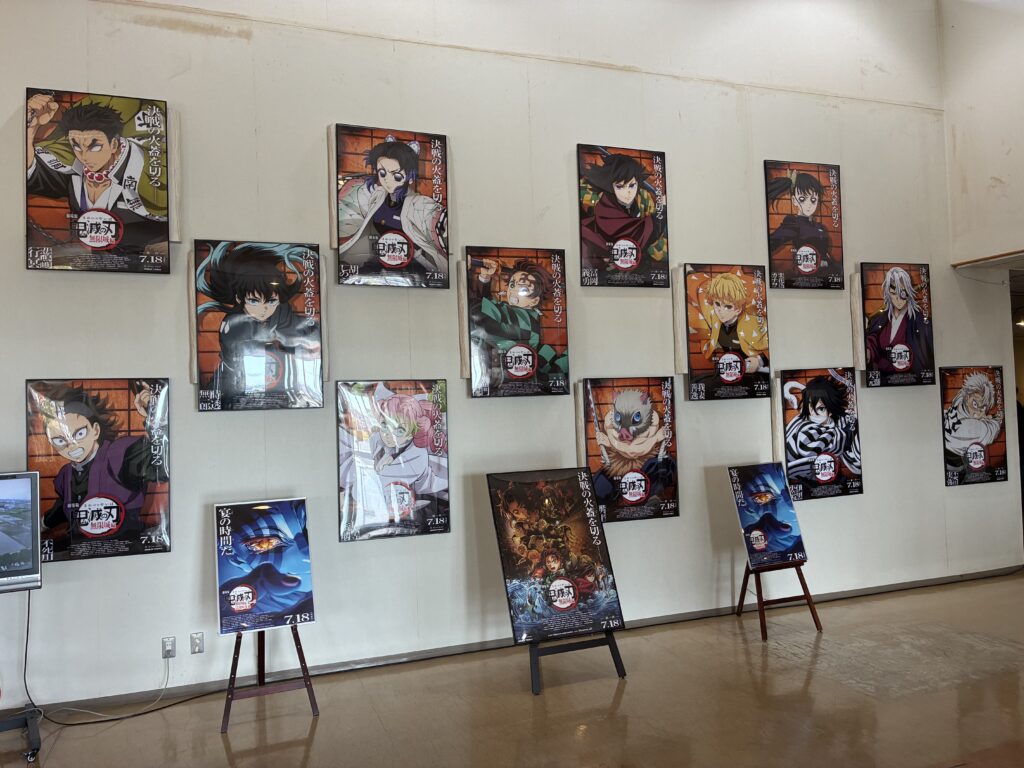 中に入ると鬼滅のパネルアートが。。お土産で狙っていた鬼滅パッケージの十万石まんじゅうは売切れでした、残念…