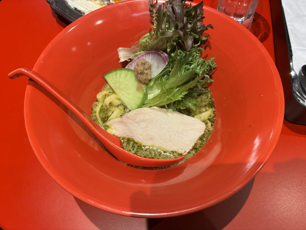 お腹が空いていたのでとりあえず1軒目、ボーノパスタでバジル豚骨スープパスタを頂きました。バジルと豚骨、意外に相性が良く美味しかったです。