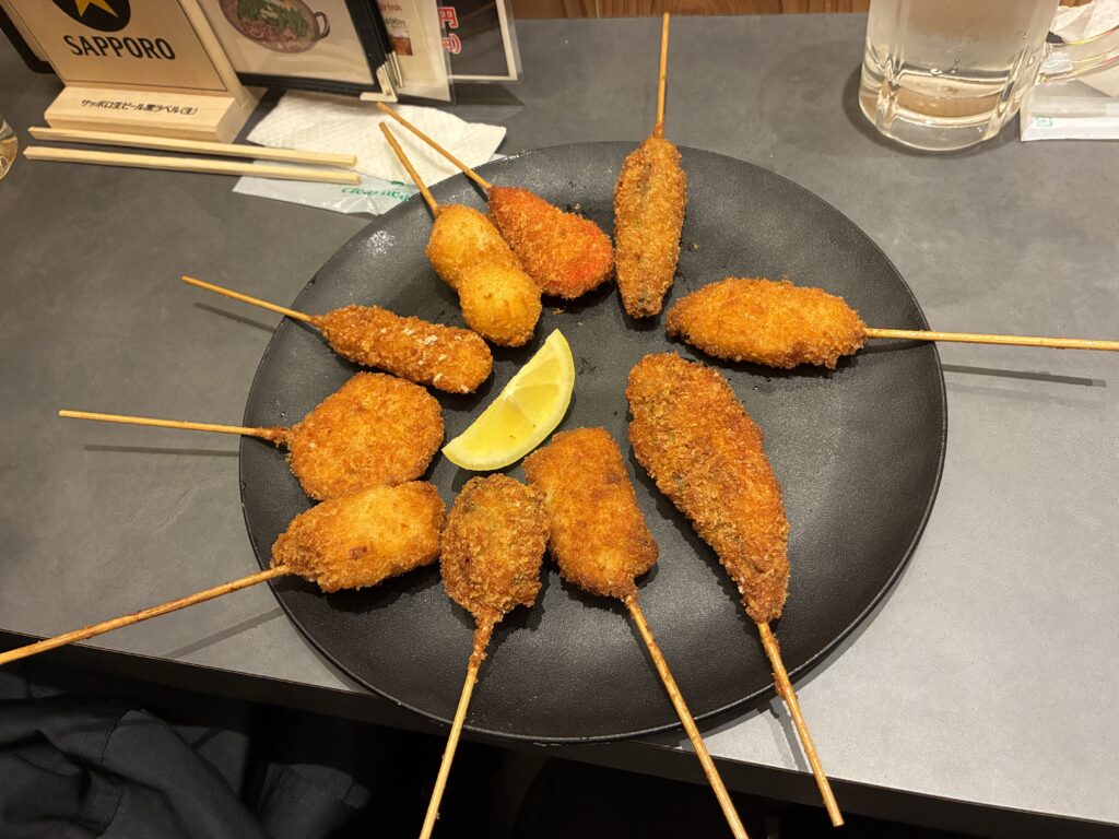 今回は串カツと帆立焼きを選びました。店長が気さくな方でとても美味しかったです。
